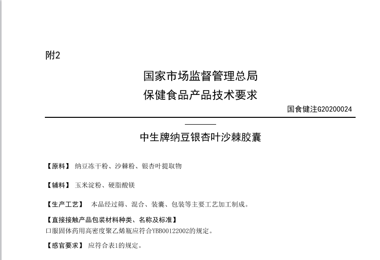 主要原料: 纳豆冻干粉、沙棘粉、银杏叶提取物